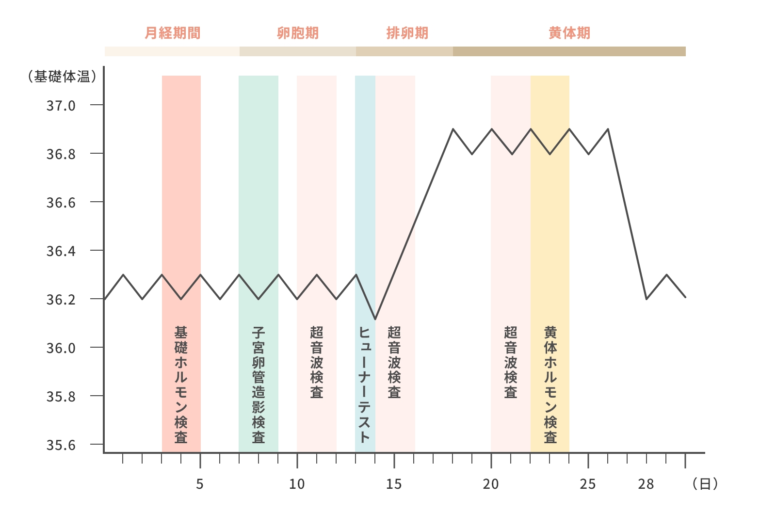 超音波検査で卵胞の成長を観察し、基礎体温やホルモン値から排卵日を正確に予測します。